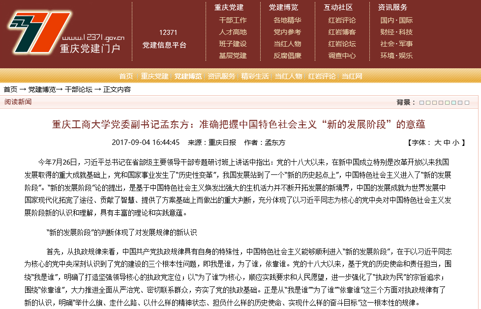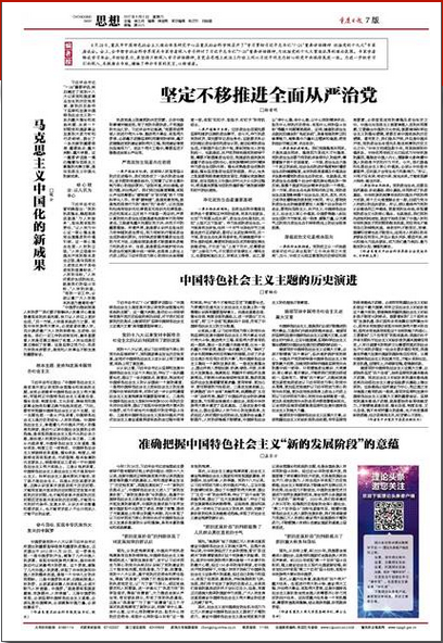 9月2日,“中心”主任孟东方教授撰写的《准确把握中国特色社会主义“新的发展阶段”的意蕴》一文在《重庆日报》理论版刊登。