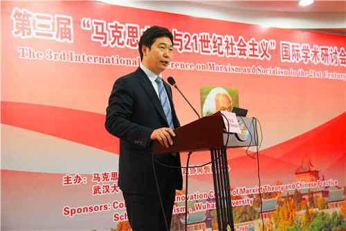 2017年11月18日至19日,第三届“马克思主义与21世纪社会主义”国际学术研讨会在武汉大学召开。会议由马克思主义理论与中国实践协同创新中心、武汉大学马克思主义学院共同主办。武汉大学党委副书记沈壮海教授指出,党的十九大召开已有一个月,本次研讨会在此时举办具有重要意义。
